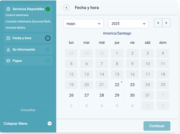 Los clientes pueden seleccionar rápidamente servicios, ubicación, fecha , hora, opciones de pago y cambiar cualquier elección sin salir de la página de reserva.